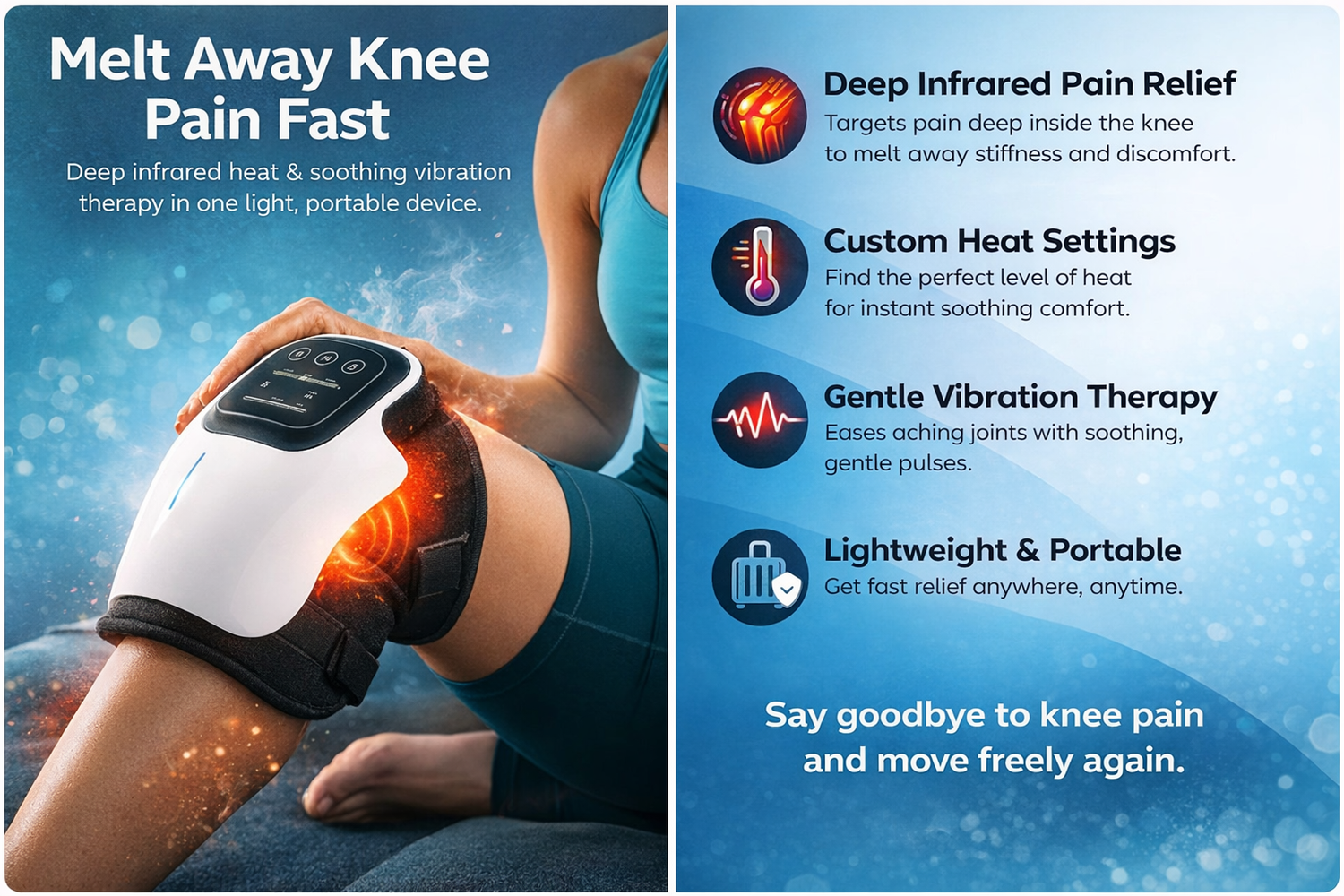 Yes. The heat + massage combo increases blood flow and relaxes stiff joints, giving fast relief for arthritis, tendonitis, and long-term knee discomfort.